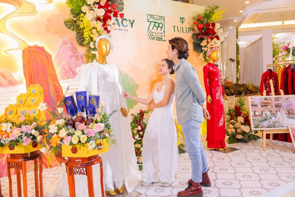 Khách tham quan háo hức tham gia các trải nghiệm độc đáo. Tại đây, các cặp đôi có thể thử làm cô dâu và làm voan cưới với Én Bridal, thử vest cưới tại gian hàng của DEZI Bespoke, khám phá những bộ sưu tập váy cưới tuyệt đẹp và nhận ưu đãi đặc biệt từ các thương hiệu nổi tiếng trong ngành cưới như 7799 Wedding Storyteller, S.premiers, PhiLinh Wedding (trang trí và lập kế hoạch cưới), Linh Nga Bridal, The Bespoke Bar (trang phục cưới), LACY Wedding, Tada Wedding Film, De Rossa Studio, Tuart Wedding (quay phim, chụp hình cưới), Skymond Luxury, Meez Jewelry (trang sức - nhẫn cưới thiết kế cao cấp)...