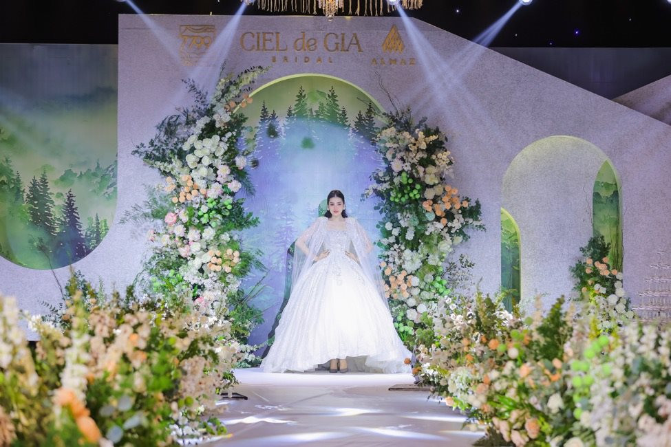 Private fashion show với chủ đề “Giấc mộng đêm hè - A Midsummer Night’s Dream" tại Almaz Wedding Fair là một trải nghiệm đầy ấn tượng. Á hậu Tú Anh - vedette của show diễn diện trên mình váy cưới đẳng cấp trong bộ sưu tập của thương hiệu CIEL de GIA và dạo bước giữa không gian thần tiên như trong những buổi tiệc cưới lãng mạn. Những bộ váy với phong cách Regency Core đã gây sốt và hứa hẹn sẽ làm thay đổi xu hướng váy cưới năm 2023.