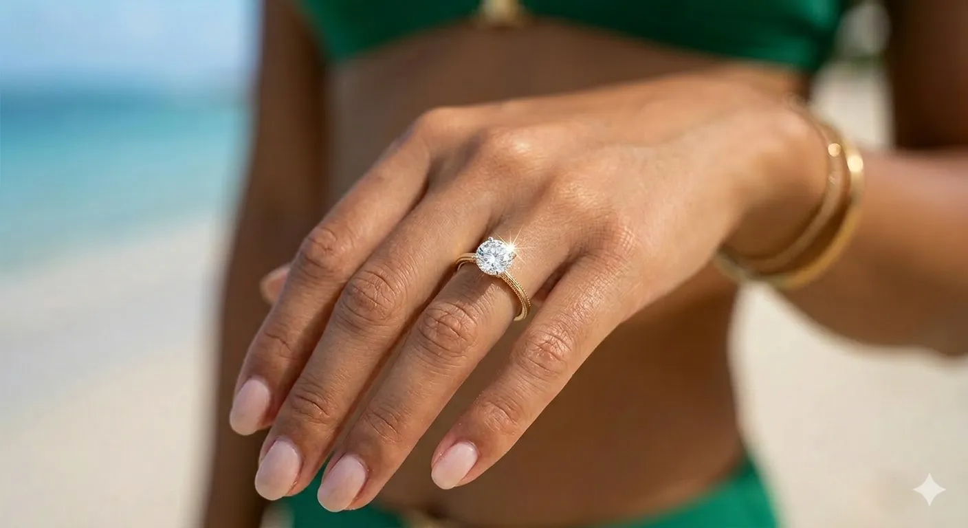 Môi trường biển với cát, muối và hóa chất từ kem chống nắng là thử thách đối với mọi loại trang sức. Để chiếc nhẫn luôn là biểu tượng gắn kết rực rỡ: