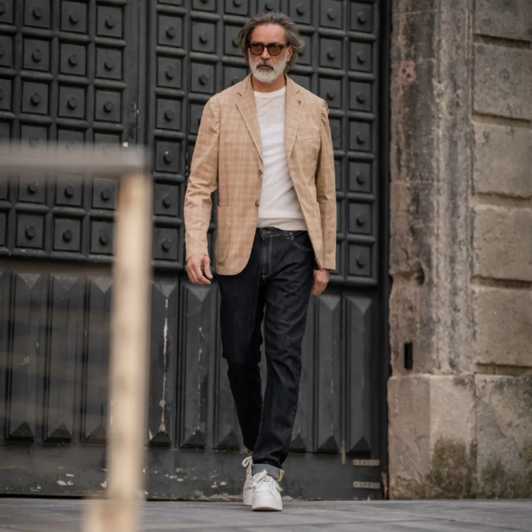 Để biến bộ trang phục ở ví dụ trên trở thành phong cách smart casual , tất cả những gì bạn cần làm là thay chiếc áo hoodie bằng một chiếc áo blazer không cấu trú. Hoặc, giữ nguyên chiếc áo hoodie và thêm một chiếc áo khoác bomber slimline và giày Derby thay cho giày sneaker.