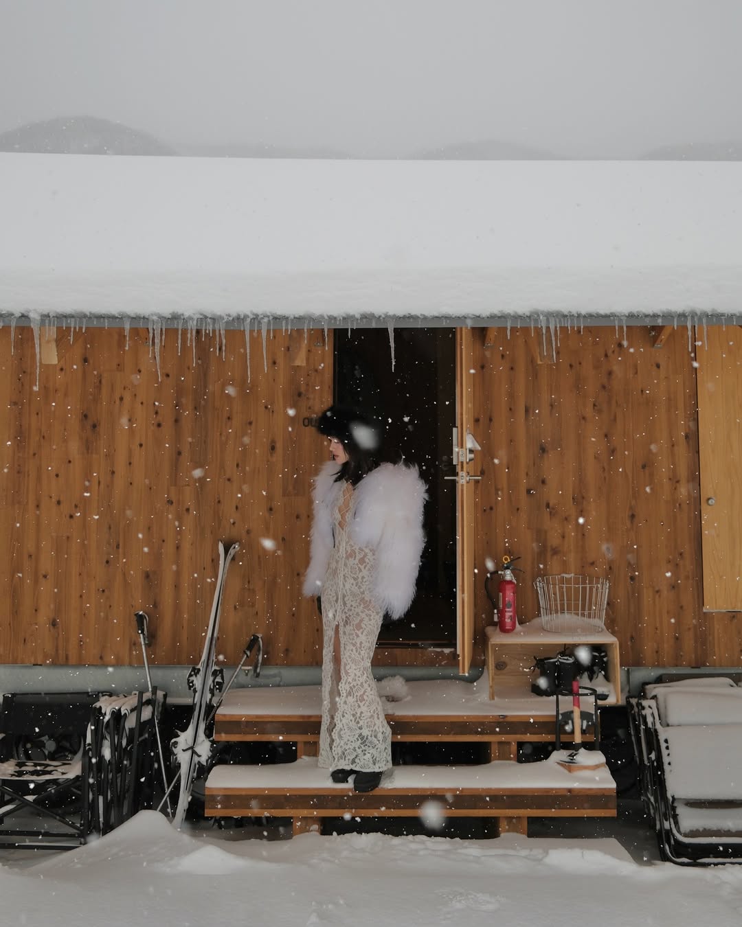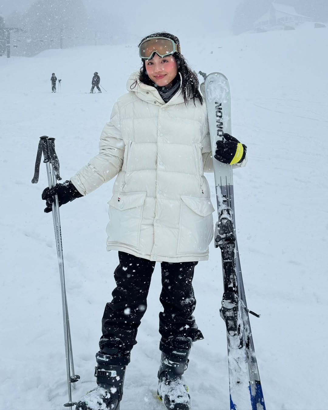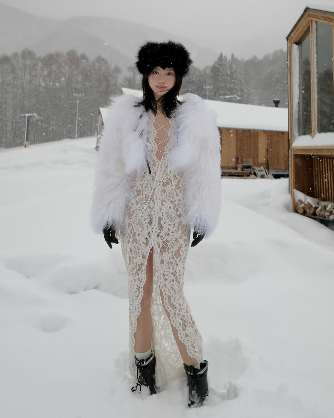 Vừa qua, trên trang cá nhân của nữ fashionista vừa đăng tải hình ảnh trượt tuyết cùng chồng tại Nhật Bản. Trong bài đăng, phong cách thời trang của cô nàng cũng được chú ý. Cô nàng diện một chiếc đầm ren dài xuyên thấu, cắt xẻ táo bạo từ thương hiệu Manurí, một thương hiệu quốc tế tầm trung với nhiều thiết kế tôn vinh sự nữ tính huyền bí (dark feminine) với các thiết kế xuyên thấu và cắt xẻ táo bạo. Khoác ngoài là một chiếc áo lông trắng đến từ thương hiệu nội địa FANCì Club. Để cân bằng tổng thể màu sắc, một chiếc mũ lông phong cách “slavic girl” cùng găng tay và boots đen là sự lựa chọn hoàn hảo. Thời trang trượt tuyết của cô nàng cũng được chú ý khi diện chiếc áo puffy giữ nhiệt đến từ thương hiệu Moncler nổi tiếng.