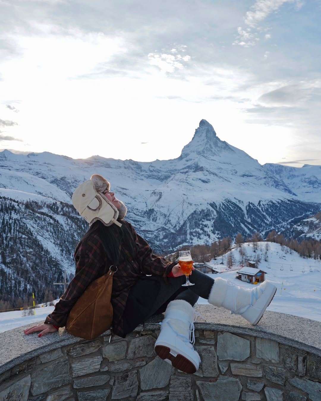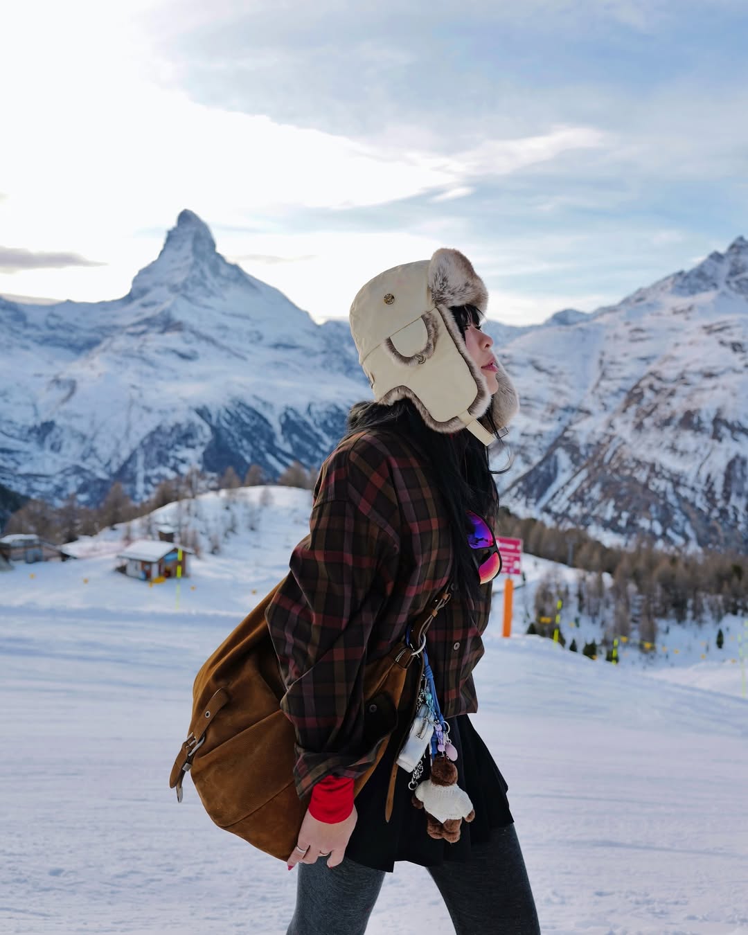 Trong chuyến du lịch gần đây nhất tại Thụy Sĩ, An Phương đã có những bức ảnh cực kỳ nên thơ dưới tuyết. Với phông nền là dãy núi tuyết thơ mộng và hùng vĩ. Trang phục được cô nàng lựa chọn khá thoải mái với áo kẻ caro đến từ thương hiệu Uniqlo, phối cùng quần legging xám. Nữ blogger diện cùng mũ lót lông và đeo túi da lộn của thương hiệu Margesherwood, một thương hiệu túi đến từ Hàn Quốc. An Phương cũng không quên diện kèm đôi giày Moonboots quen thuộc với những người yêu thích du lịch đến những vùng có tuyết.