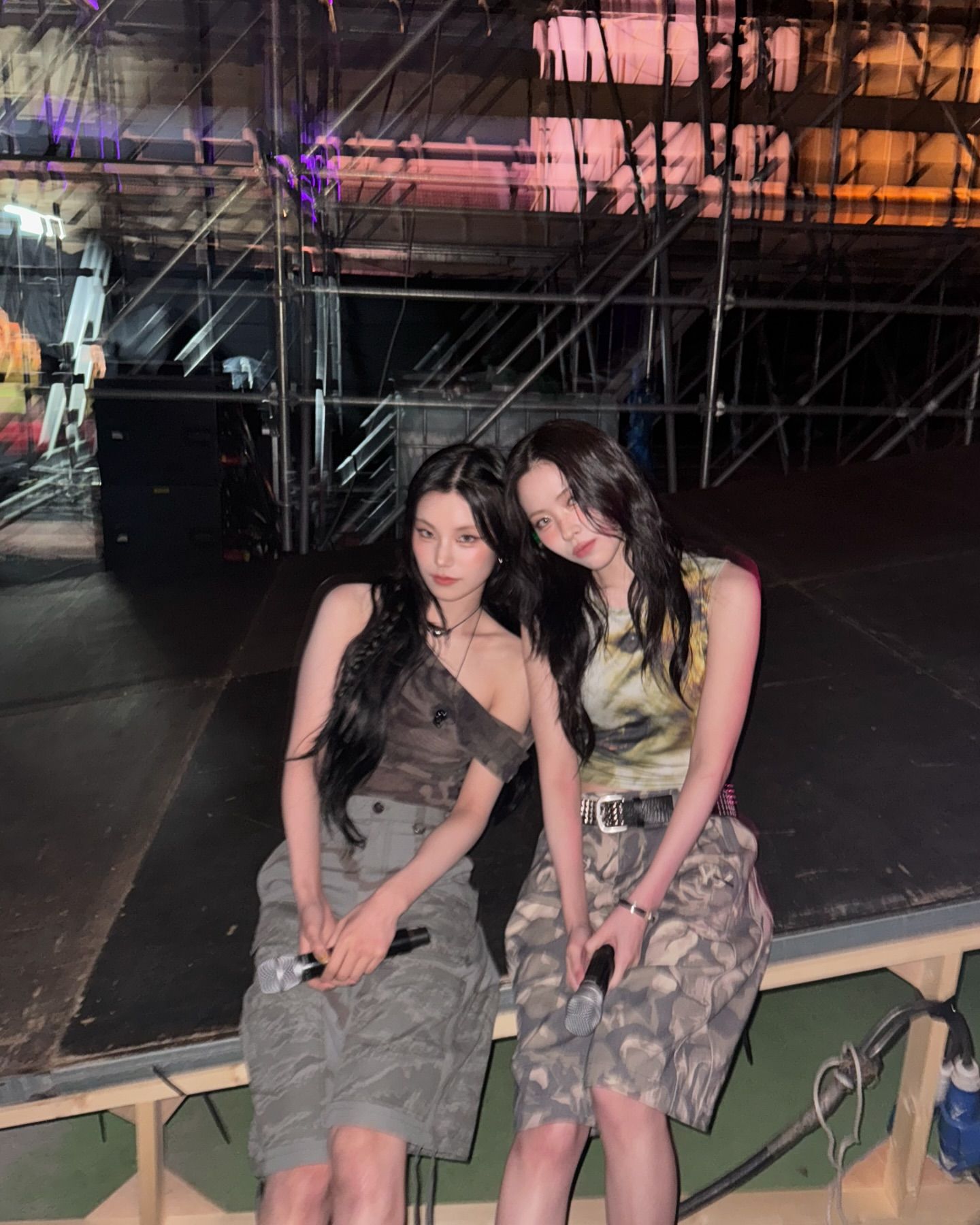 Haneul (trái) từ Kiss Of Life diện váy mini camo. (Ảnh: @kissoflife_s2)