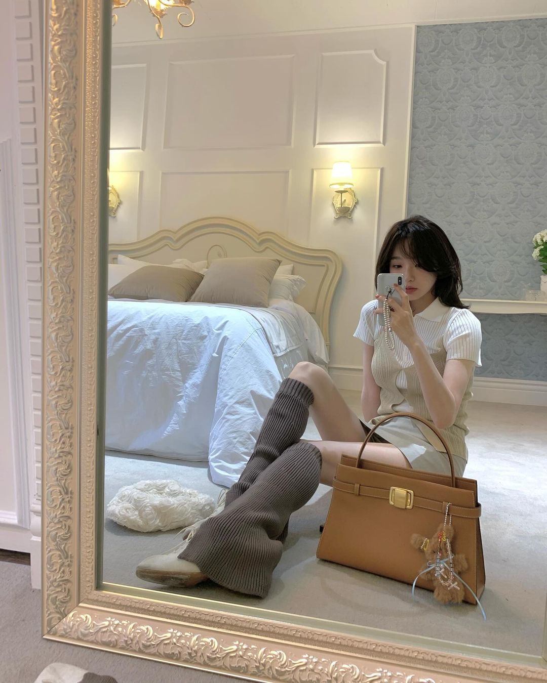 Nhan sắc yêu kiều và đáng yêu của Kang Min Kyung (Davichi) rất phù hợp với những trang phục mang phong cách nhẹ nhàng, tiểu thư. Cô đội chiếc mũ độc đáo và bồng bềnh tựa như những hàng nghìn cách hồng trắng nối kết vào nhau. Với trang phục áo polo dáng ôm cùng áo ghi lê dạng dây màu be cùng chân váy ngắn chung tông màu, vẻ ngoài của nàng thơ nhà Davichi mang đến sự ngọt ngào như chính nhan sắc của cô. Chiếc túi xách dáng vuông màu nâu có thiết kế đơn giản càng tăng sự cổ điển và thanh lịch cho trang phục này.