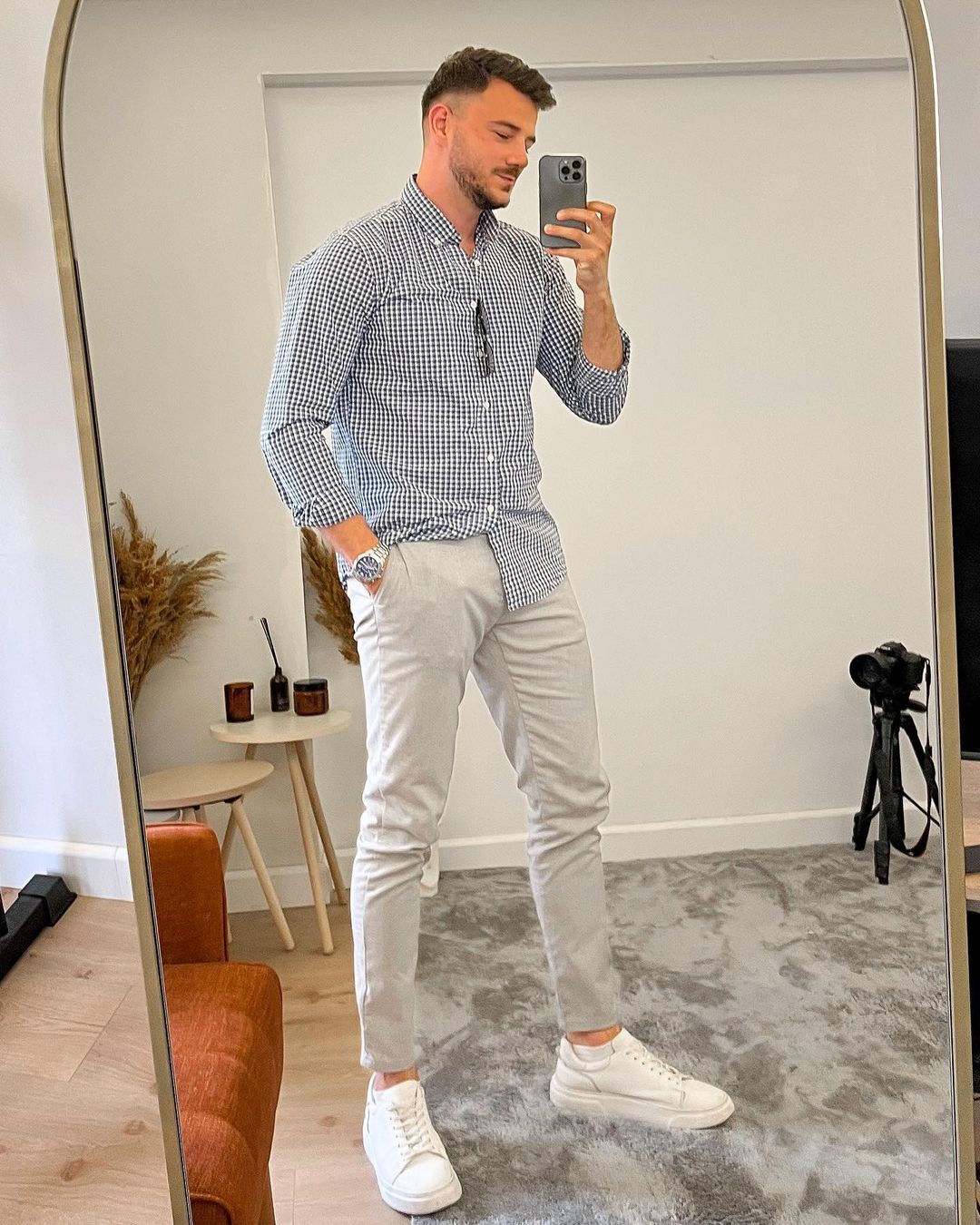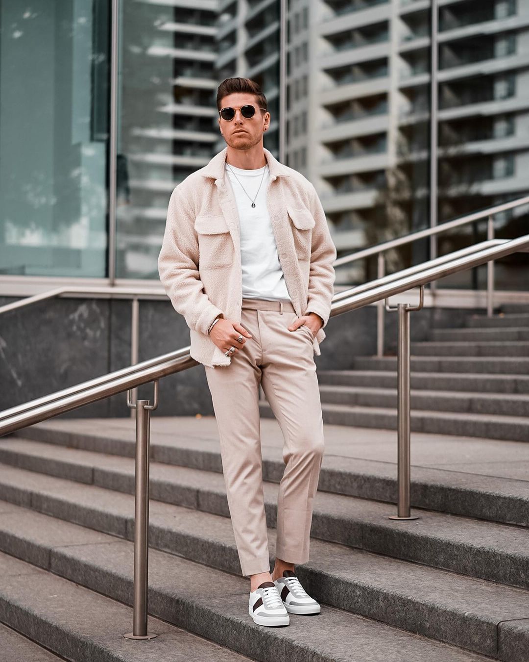 Tuy nhiên, đối với một buổi hẹn hò, mặc blazer có thể hơi quá một chút, tùy thuộc vào nơi bạn sẽ đến. Để không cảm thấy mình bị quá lố, bạn có thể chọn mặc theo phong cách smart casual ở phần thân dưới, với quần tây boots, nhưng hãy giữ mọi thứ thoải mái hơn với áo sơ mi Oxford không cần đóng thùng và áo khoác bomber.