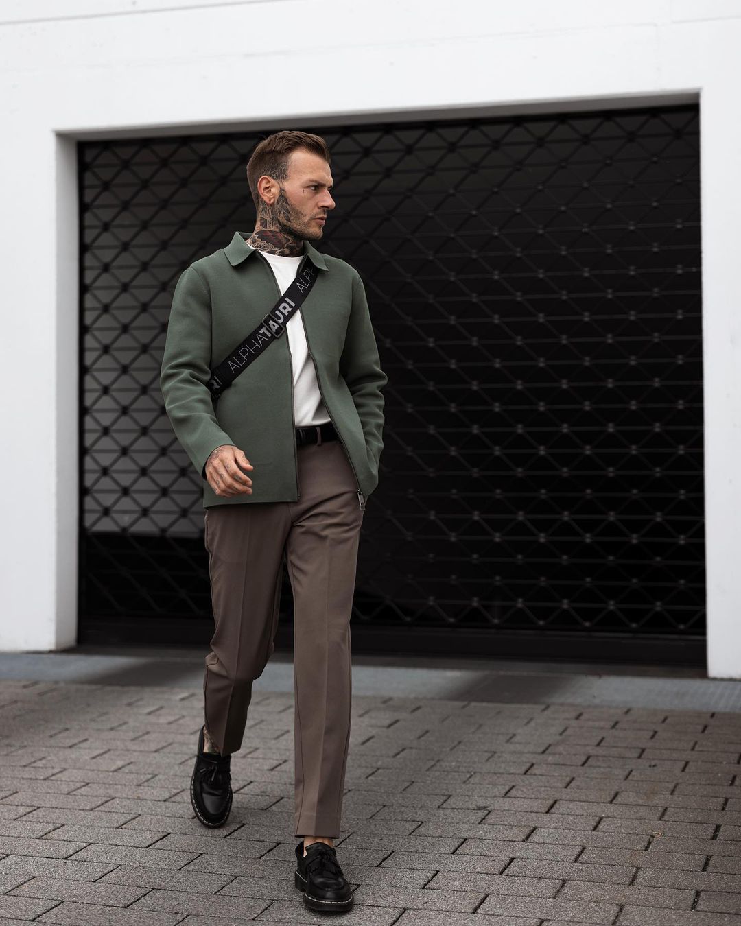 Để biến bộ trang phục ở ví dụ trên trở thành phong cách smart casual , tất cả những gì bạn cần làm là thay chiếc áo hoodie bằng một chiếc áo blazer không cấu trú. Hoặc, giữ nguyên chiếc áo hoodie và thêm một chiếc áo khoác bomber slimline và giày Derby thay cho giày sneaker.