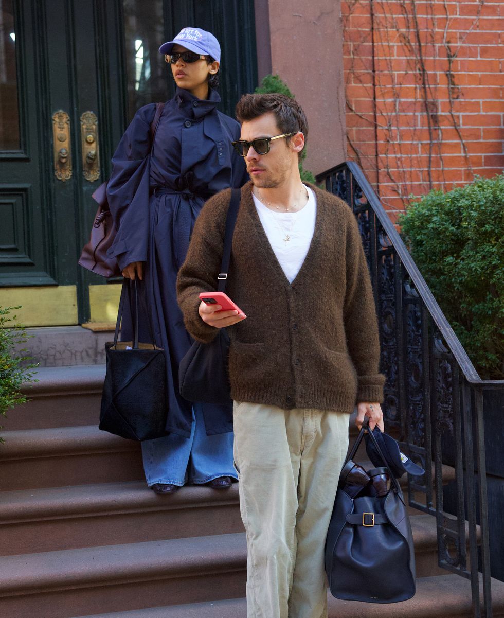 Là một trong những cặp đôi mới của Hollywood, khi bước xuống đường phố New York, Taylor Russell – Harry Styles nhanh chóng chiếm trọn ống kính của người đi đường nhờ phong cách thanh lịch, tinh tế. Taylor Russell khoác lên mình chiếc áo trench coat dài màu xanh navy, kết hợp với quần jeans, mũ lưỡi trai tông màu pastel, giày loafer da đen và túi Loewe Puzzle Fold Tote Bag. Trong khi đó, nam ca sĩ Harry Styles chọn cho mình chiếc áo len cardigan màu nâu mềm mại khoác ngoài áo thun trắng, quần kaki, kính râm đen và mẫu túi Margaux của The Row.