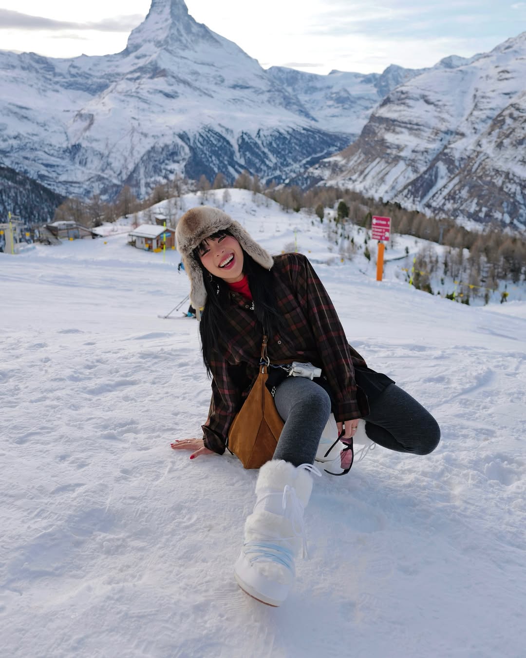 Trong chuyến du lịch gần đây nhất tại Thụy Sĩ, An Phương đã có những bức ảnh cực kỳ nên thơ dưới tuyết. Với phông nền là dãy núi tuyết thơ mộng và hùng vĩ. Trang phục được cô nàng lựa chọn khá thoải mái với áo kẻ caro đến từ thương hiệu Uniqlo, phối cùng quần legging xám. Nữ blogger diện cùng mũ lót lông và đeo túi da lộn của thương hiệu Margesherwood, một thương hiệu túi đến từ Hàn Quốc. An Phương cũng không quên diện kèm đôi giày Moonboots quen thuộc với những người yêu thích du lịch đến những vùng có tuyết.